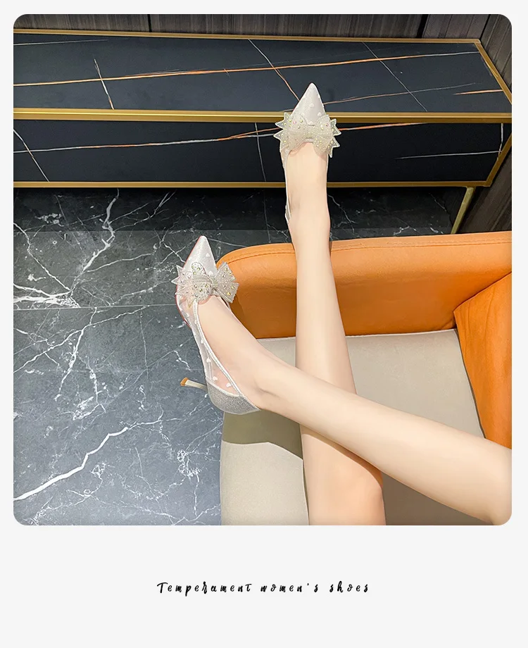 Summer Mesh Bow Knot Pointed Toe Slim Heels – French Style